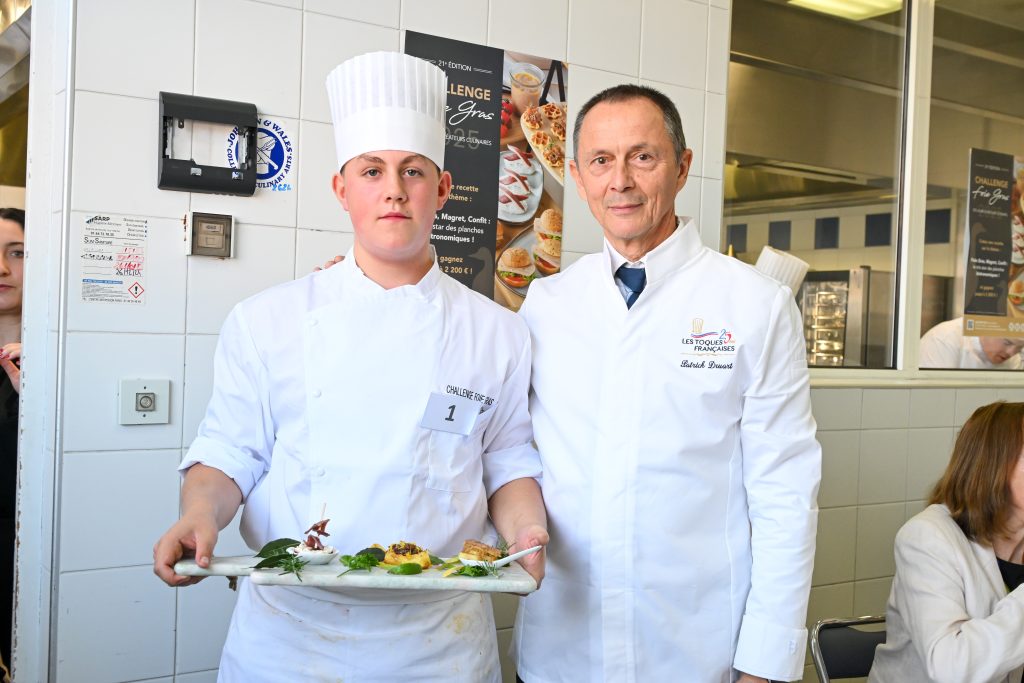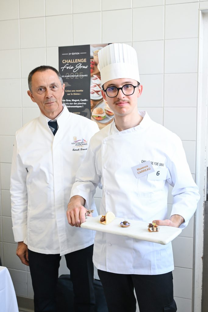 Le 1er prix du Challenge Foie Gras 2025 a été attribué à MAXENCE CARREAU, un jeune chef plein de talent âgé de 21 ans et originaire de la Bourgogne Franche-Comté. Tout juste diplômé d’un BTS Management en Hôtellerie-estauration à Auxerre, il travaille aujourd’hui au restaurant gastronomique LE CHAMBARD, du chef Olivier Nasti, à Kaysersberg, dans le Haut-Rhin (68).
