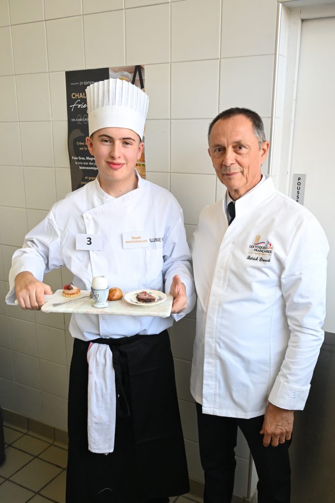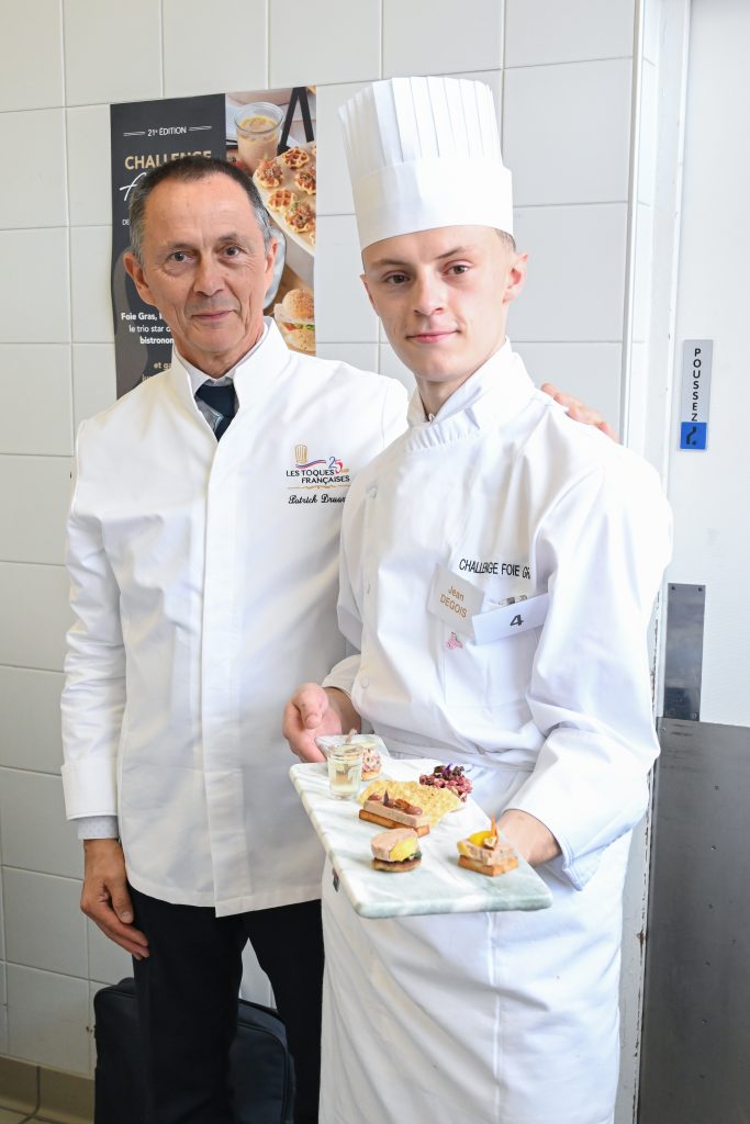 JEAN DEGOIS, âgé de 21 ans, a reçu le 3e prixdu Challenge Foie Gras. Né dans le Doubs (25), en Bourgogne Franche-Comté, Jean a préparé ce concours avec son employeur, le restaurant L’HÔTEL DE LA TRUITE, en Suisse. Il est actuellement en 1ère année de BTS au Lycée Friant de Poligny, dans le Jura (39).
