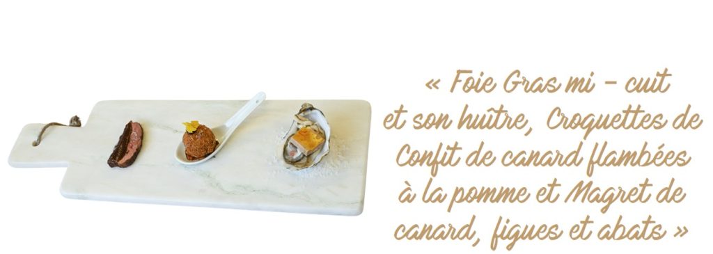 Pour cette 21e édition, le Cercle des Amoureux du Foie Gras, à l’initiative du Challenge Foie Gras des Jeunes Créateurs Culinaires, a souhaité honorer un concept inspiré de l’apéritif à la française : la planche bistronomique. Tendance en plein essor, ce plateau gourmand séduit de plus en plus les fins gourmets désireux de passer un moment convivial et généreux autour de mets d’exception. Téo Gomez a réalisé sa recette dans les cuisines de l’École Ferrandi à Paris, qui accueillait cette année les six concurrents sélectionnés pour la finale, sur le thème :