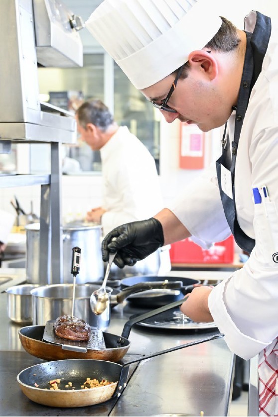 Pour départager les candidats, les critères portaient sur la qualité de la présentation, le goût, l’accord des saveurs et une attention particulière a également été portée à l’attitude des candidats en cuisine : respect du temps imparti et des règles d’hygiène, gaspillage, comportement…